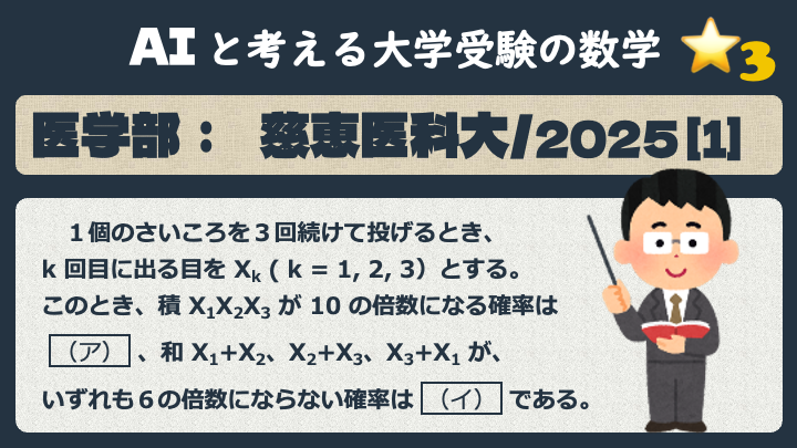 ◆ 東京慈恵会医科大学|医学科|数学 ・第1問の解説| 第2問の解説(※ 準備中)| 第3問の解説(※ 準備中)| 第4問の解説(※ 準備中) |