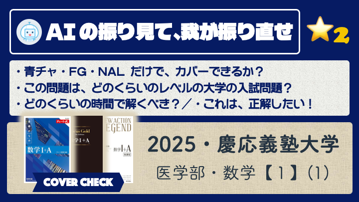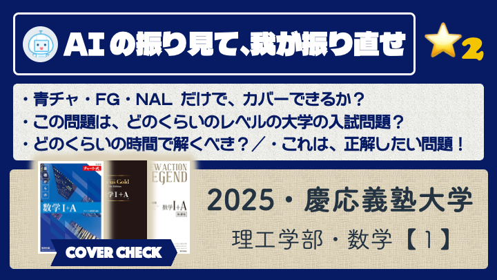 | ◆ この解説動画シリーズの目的は、過去の入試問題に対して、生成AIの回答などを検証・研究することで、 その問題に対する理解を、より深めることにあります。 | |